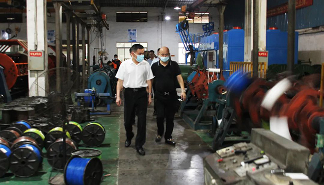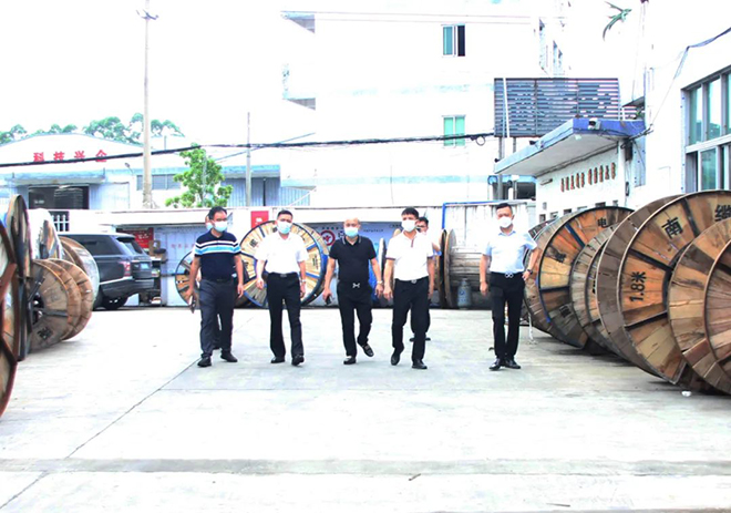 2022年5月31日,廣州市白云區(qū)黨委副書記邱之仲、鐘落潭鎮(zhèn)黨委書記劉耀均、鎮(zhèn)黨委副書記黃力新等一行,來廣東南纜電纜有限公司調(diào)研,南纜電纜公司總經(jīng)理柯志欣、常務(wù)副總經(jīng)理取立群陪同。